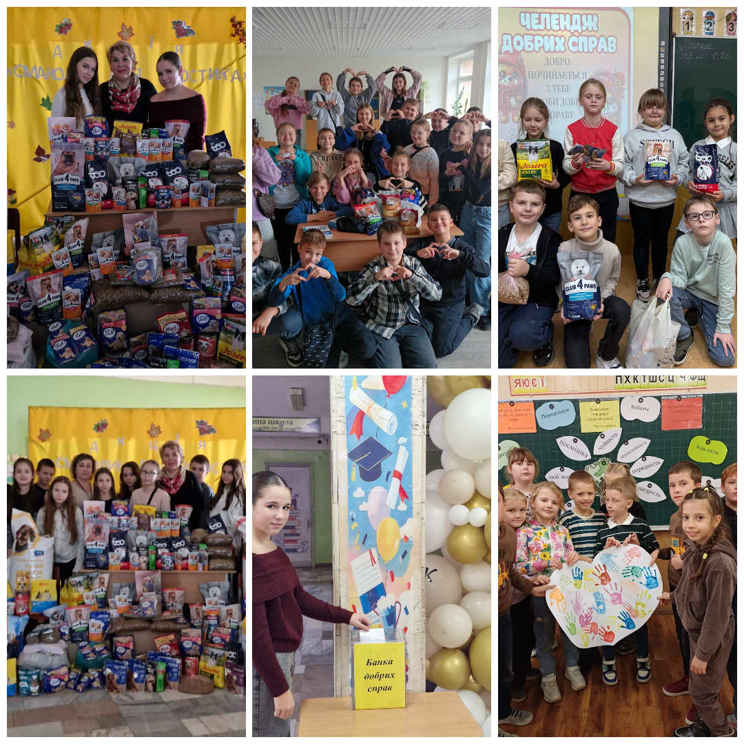 Усі класи долучилися до благодійна акція «Смаколик для хвостика» зі збору корму для тварин, що перебувають у притулках або тимчасових домівках. Ми щиро дякуємо всім небайдужим учням, батькам і педагогам, які долучилися до цієї доброї справи! Разом ми показали, що милосердя не має меж.