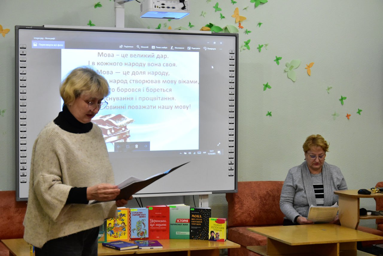 В межах Всеукраїнського місячника шкільних бібліотек, який проходить під гаслом ” Рідна мова – наша зброя і наш оберіг” разом з учнями 9а Інтелект-класу ( кл.кер. Коцюба О.А.) завітали до Полтавська обласна бібліотека для юнацтва ім. Олеся Гончара на чудовий захід присвячений нашій мелодійній, живій, дотепній, променистій українській мові. Зробили висновок -мова має силу і значення. Українська мова – в серці, на вулиці, в мережі! Бережімо наше слово, адже в ньому наша ідентичність, історія і майбутнє!