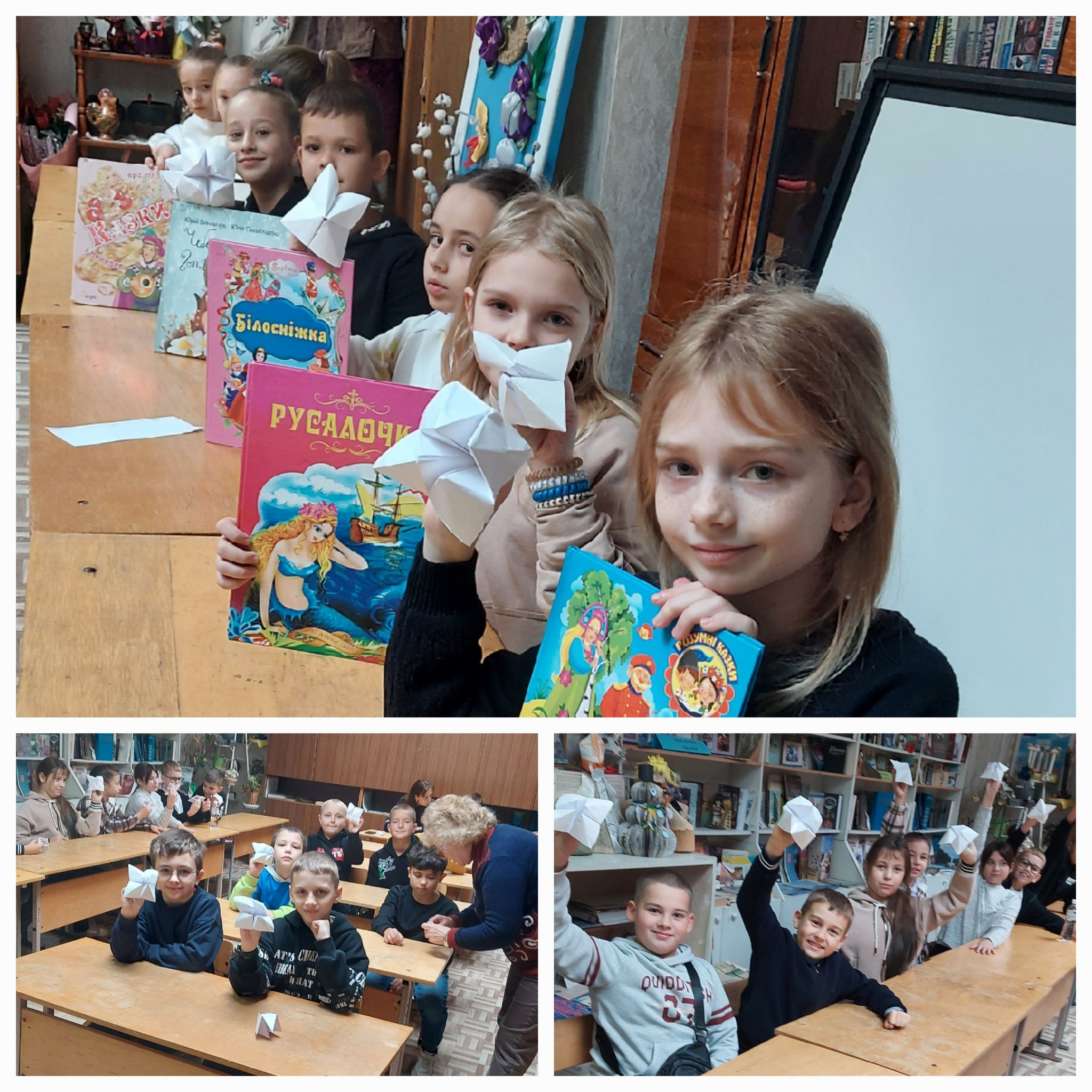 Щорічно мільйони людей у світі відзначають Всесвітній день оригамі, різновид японського декоративно-прикладного мистецтва складання фігурок з паперу. В шкільній бібліотеці представлена виставка робіт в техніці оригамі “Власні ручки роблять модні штучки”, яку оглянули учні 2-б класу ( кл. кер.Сипко С.В). На майстер-класі діти вчилися виготовляти паперові іграшки, розфарбовували їх, ділилися враженнями. День оригамі – прекрасний шанс почати виготовляти паперові фігурки, дарувати їх рідним та друзям, здобути нове цікаве хобі.
